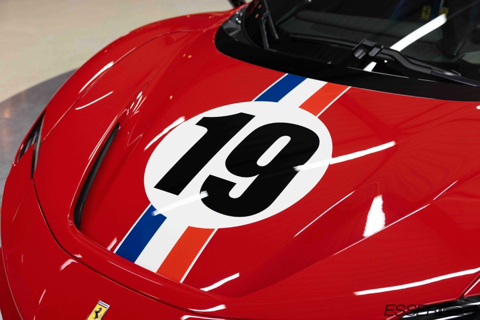 Livery with french tricolour (outer edge in bianco bianco, also between blu livrea francese of livery and rosso corsa DS 322 of bodyshell) with following colours: Blu livrea, francese 30001329, rosso livrea francese fym ∗0025, bianco bianco fym ∗0025 and with outer edge on both sides of livery in bianco bianco fym ∗0025 and circles in bianco bianco fym ∗0025.